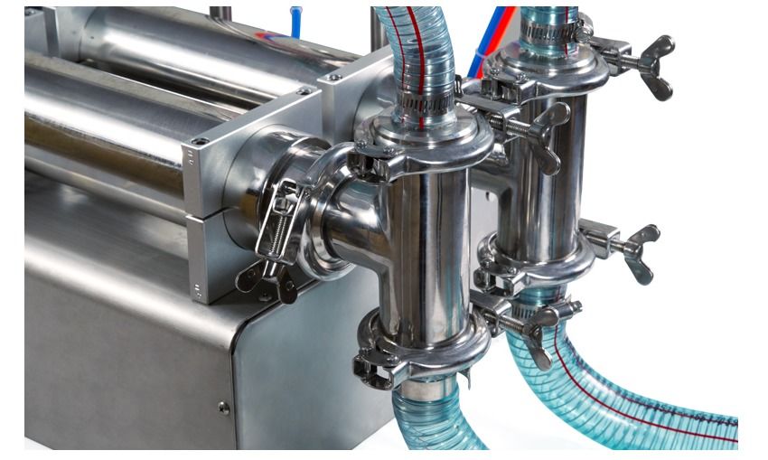 পূর্ণ স্টেইনলেস স্টীল ফিলিং মেশিন 2 মাথা পিস্টন ফিলার 10-5000ml