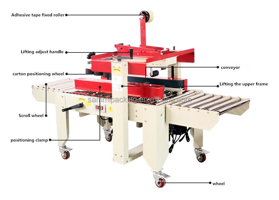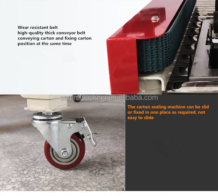 2. কার্টনের আকার অনুযায়ী সিলিং উচ্চতা এবং প্রস্থকে হাত দিয়ে সামঞ্জস্য করুন, তারপরে কার্টনটি কাজের টেবিলে রাখুন, এবং কার্টনটি একই সাথে স্বয়ংক্রিয়ভাবে টেপ দিয়ে প্রেরণ এবং সিল করা হবে।